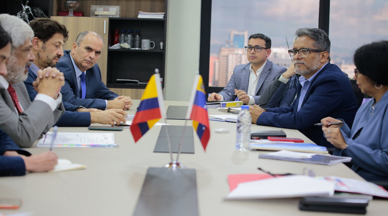 La delegación colombiana que asistió al encuentro en el despacho de la Vicepresidencia de Venezuela, está integrada por el ministro de comercio, industria y turismo de Colombia, German Umaña y el viceministro de comercio exterior colombiano, Luis Felipe Quintero, entre otras personalidades visitantes.